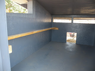 S is cutting the opening from the run into the access space while the girls all watch and wonder...